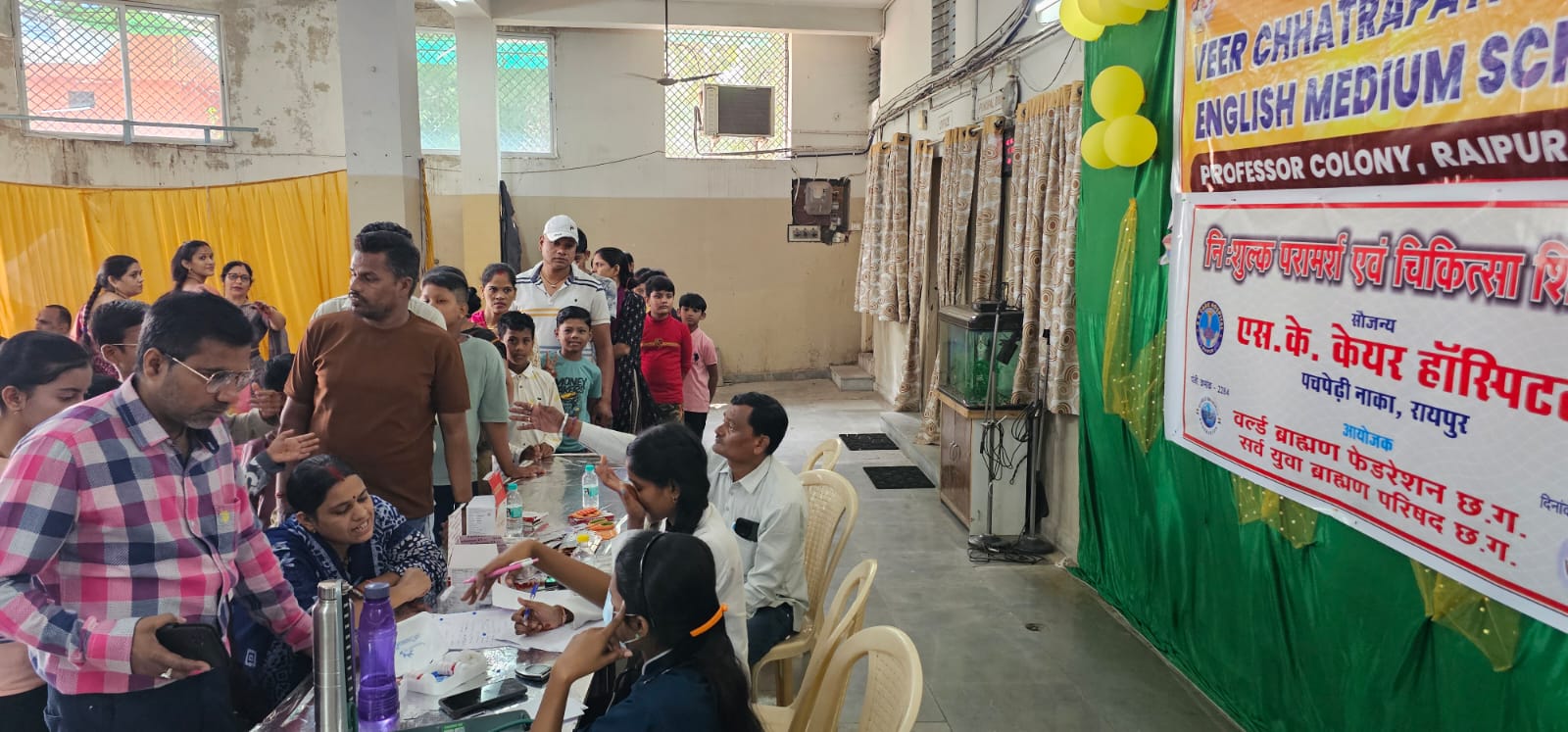 रायपुर, वर्ल्ड ब्राह्मण फेडरेशन छ.ग., सर्व युवा ब्राह्मण परिषद छ.ग. एवं एस के केयर हास्पिटल, पचपेड़ी नाका, रायपुर के संयुक्त तत्वावधान में स्व. श्री मांगेराम जी शर्मा, संस्थापक एवं पूर्व चेयरमैन की पुण्यतिथि के अवसर पर निशुल्क परामर्श एवं चिकित्सा शिविर का आयोजन रविवार दिनांक 12 अक्टूबर, 2025 छत्रपति शिवाजी उच्चतर माध्यमिक विद्यालय, रायपुर में प्रात 10 बजे से दोपहर 2 बजे तक किया गया.