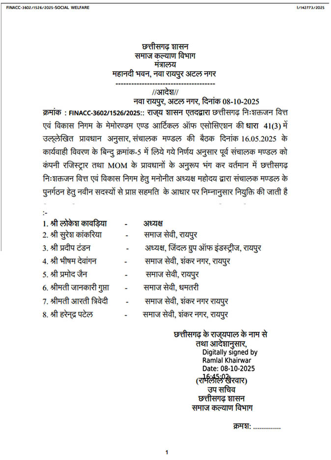 ”मैं स्वयं को अत्यंत गौरवान्वित महसूस कर रहा हूँ कि मुझे छत्तीसगढ़ निःशक्तजन वित्त एवं विकास निगम के सदस्य के रूप में सेवा करने का यह महत्वपूर्ण दायित्व सौंपा गया है। दिव्यांगजन समुदाय के लिए काम करना मेरे लिए केवल एक पद नहीं, बल्कि एक सच्चा सौभाग्य है। मैं इस कार्य को एक लक्ष्य के रूप में लेता हूँ, और हर उस व्यक्ति के लिए काम करने के लिए प्रतिबद्ध हूँ, जिसे हमारी सहायता की आवश्यकता है।”